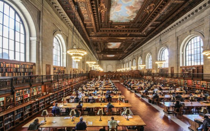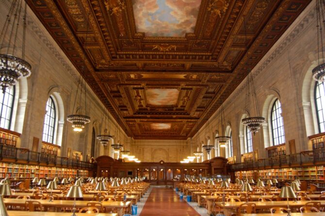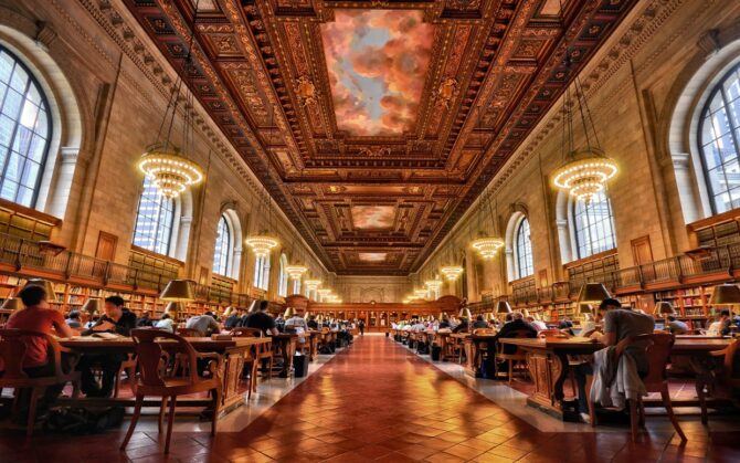New York students come here to find the necessary book and prepare for the exam. The public library is a place of worship that is visited by tourists. Everyone can take a book here for free and read in complete silence, without being distracted by anything.