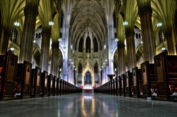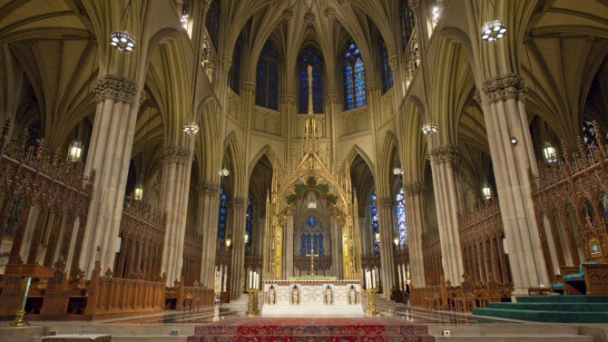 The building is built of brick and designed in the shape of a cross. Its exterior facades and interior are lined with marble. A huge hall inside is able to accommodate more than 2 thousand people. The cathedral is active, services are held daily in it, and on March 17, when St. Patrick’s Day is celebrated, a huge number of believers arrive here.