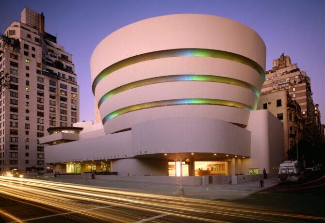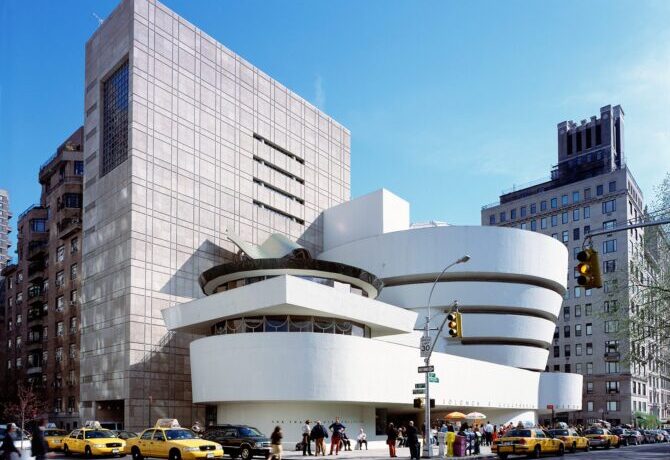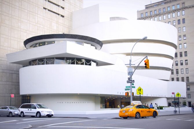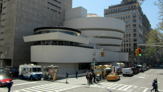 The Guggenheim Museum has unusual architecture. Some compare it to a spaceship, others to an inverted pyramid. The building in the form of an irregular ellipsoid looks futuristic against the background of skyscrapers. Visiting the museum also evokes special emotions. At the entrance, visitors are delivered to the upper floor on a special elevator, and from there, going down the gallery in the form of a serpentine, you can see the expositions.