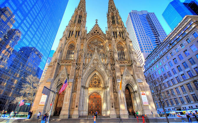 A colossal architectural object and one of the main attractions of New York. St. Patrick’s Cathedral was built in the mid-19th place according to a unique project by architect Renwick the Younger. During the opening of the temple, its 100-meter spires towered over the buildings of the city, but today it is surrounded by skyscrapers, the neighborhood with which emphasizes the unusual architecture made in the neo-Gothic style.
