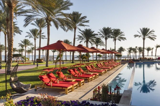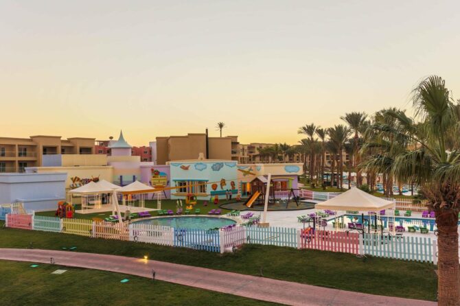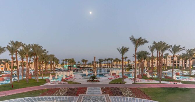 Grand Azur is a brand new hotel, the construction of its first building was completed in 2009. Maybe that’s why the hotel has the only drawback I discovered – the lack of trees and large shrubs. But flower beds amaze with diversity and magnificence. However, when we wanted to be in the shade, we went to one of the four outdoor pools, near which we rested on sunbeds under umbrellas.
