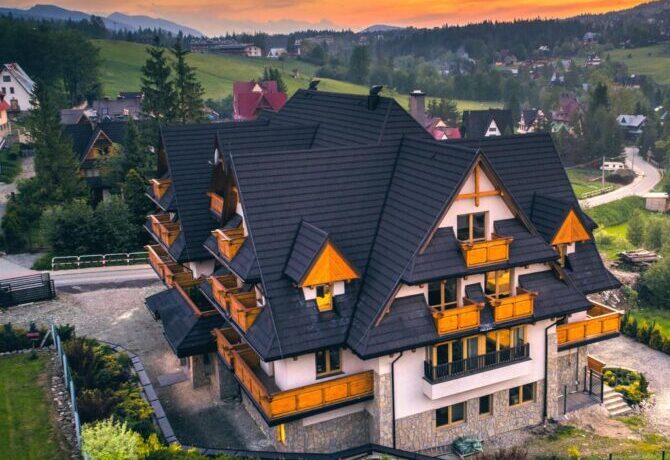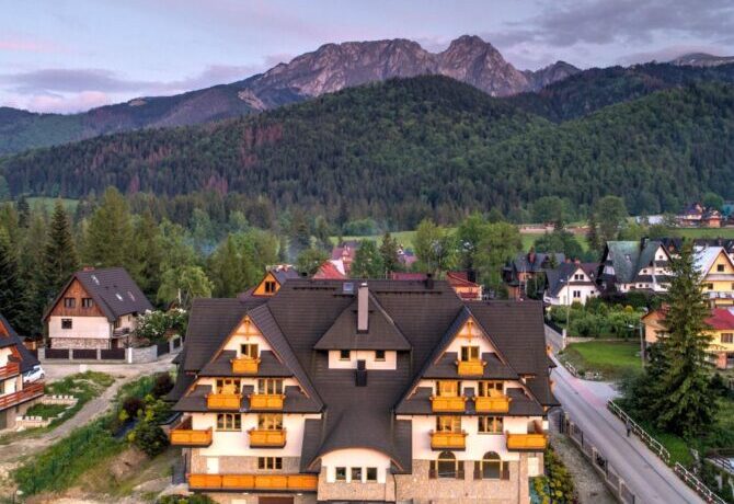 According to guest reviews, Gold Hotel is considered the best hotel in Zakopane. This is a small cottage with 30 rooms, built at the foot of the mountains, next to the funicular. In addition to living rooms, the hotel has a spa with a hot tub and sauna, common living rooms and terraces where you can relax after a long day of exploring everything that Zakopane has to offer. The staff is polite and friendly.