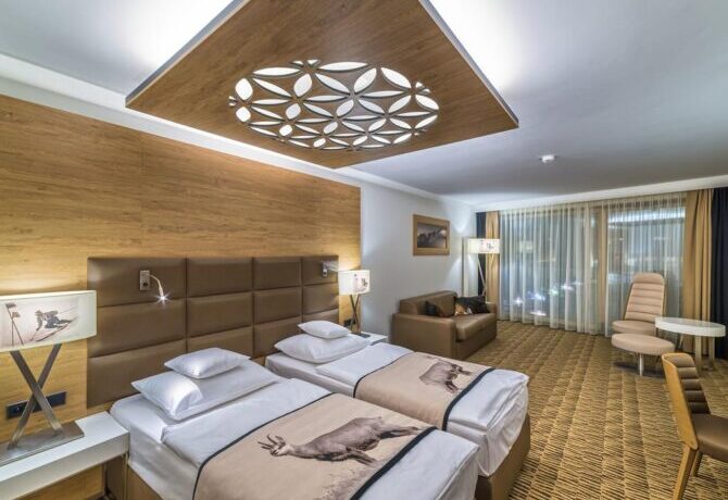 The hotel offers its guests entertainment on site and off- Experienced guides will pick up an excursion, ski uniform rental equips both an adult and a small athlete. In summer, the hotel’s tour desk offers hiking trails and bicycle rental. This luxury hotel in Zakopane is great for everyone, including families with children, business travelers, couples or newlyweds.