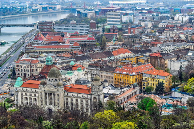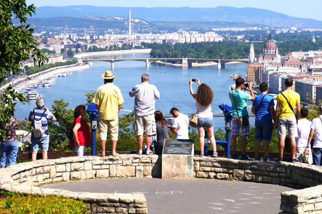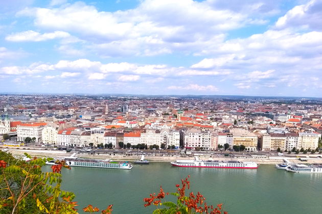 Отсюда открывается великолепный вид на купальню Геллерт, Центральный рынок, Мост Свободы, Технический университет и Мост Петефи.