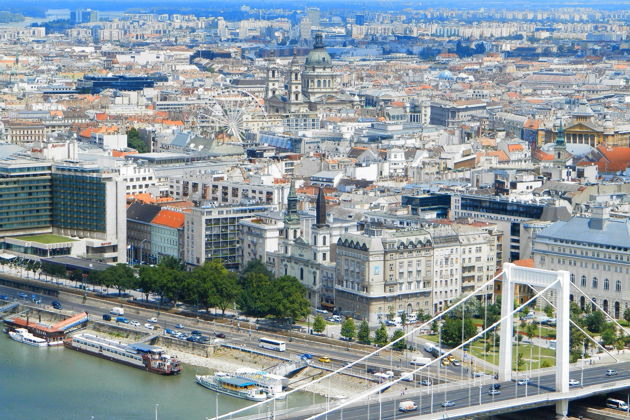 Отсюда открывается живописный вид на мост Эржебет и Дунайскую набережную Пешта.