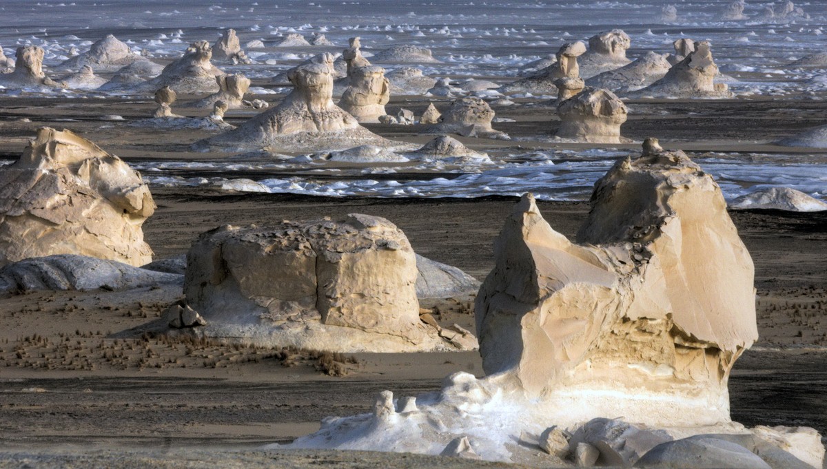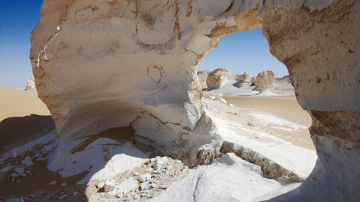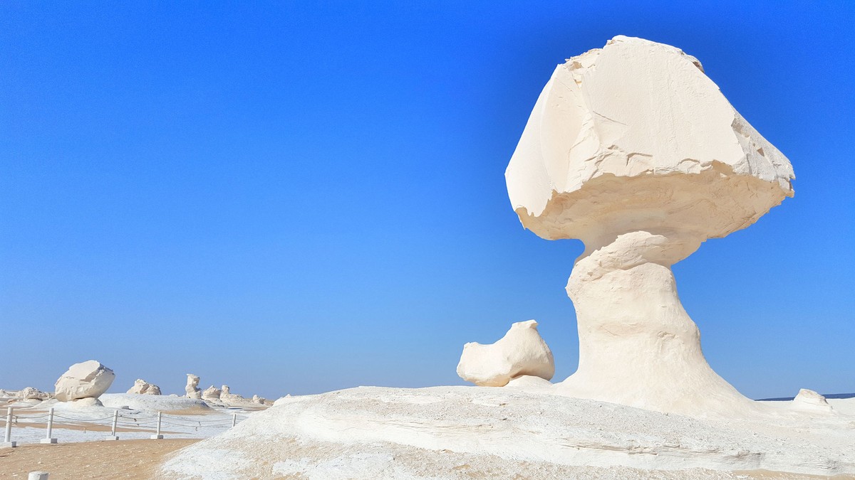 - Белая пустыня встретит вас уникальными чудесами природы, образовавшимися миллионы лет назад на месте дна океана. Здесь песок напоминает снег, а известняковые образования похожи на причудливые фигуры.