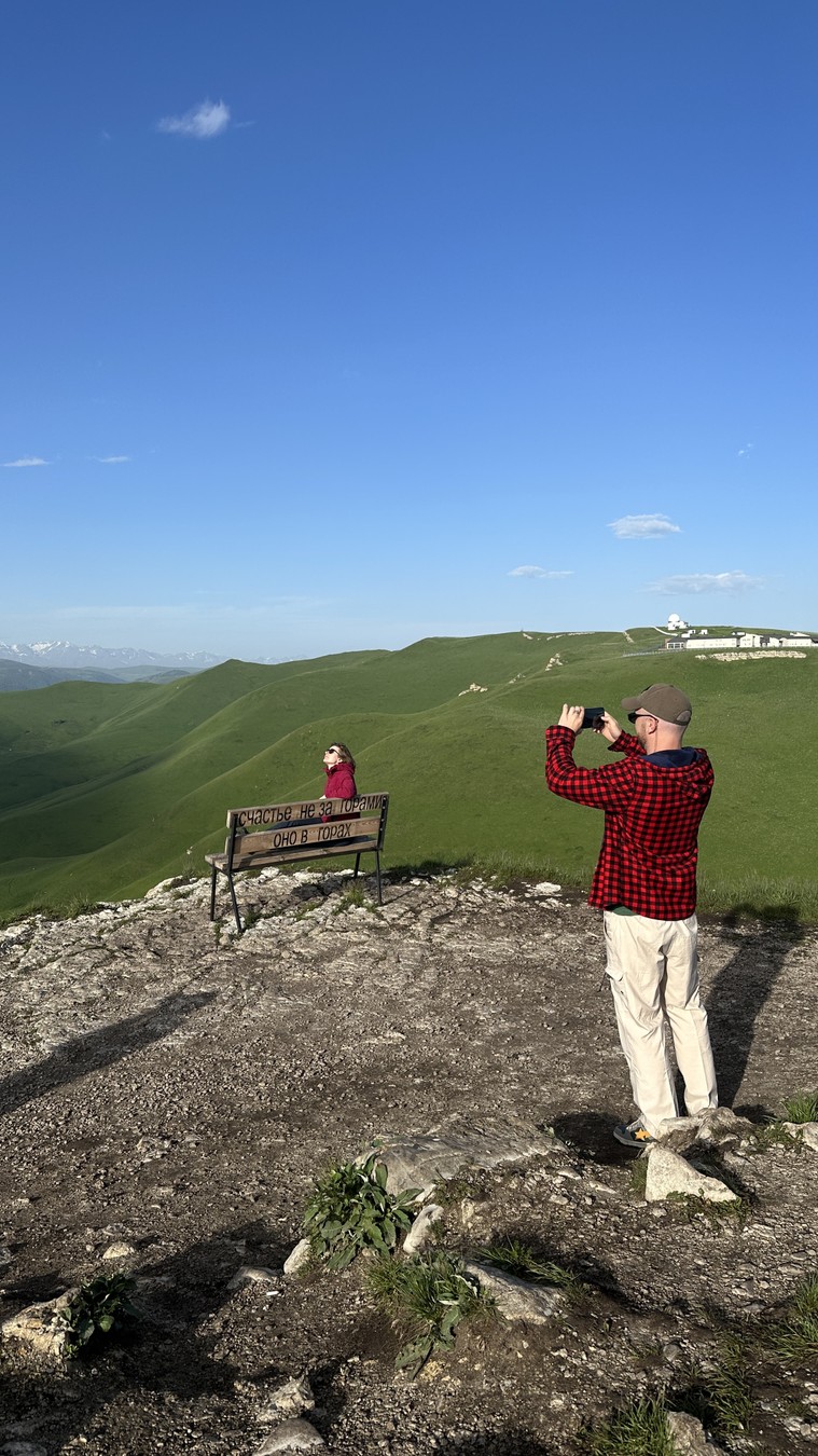 - Смотровая площадка на горе Шаджатмаз с популярной лавочкой. Здесь мы остановимся, чтобы полюбоваться красотой Эльбруса и сделать атмосферные фотографии. А наш гид подскажет вам самые удачные ракурсы