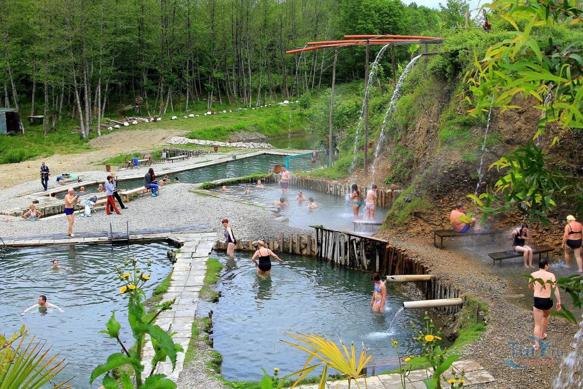 Кындыгские термы. Кульминация нашей экскурсии: в посёлке Кындыг вы расслабитесь душой и телом в горячих источниках с температурой от 28 до 40 градусов. Также в вашем распоряжении природный гидродуш, бочка с холодной водой и лечебные грязевые ванны.