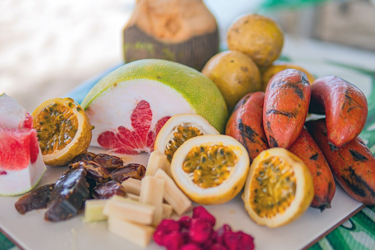 Свежеприготовленные морепродукты — лобстер, рыба, кальмары, осьминог — плюс тропические фрукты. Для вегетарианцев доступны альтернативные блюда.