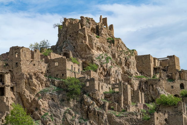 Дальше наш путь лежит в одно из древнейших поселений в Республике Дагестан. Гамсутль расположился в Гунибском районе Дагестана, на высоте 1500 метров над уровнем моря. В настоящий момент является заброшенным. Аул-призрак уникален необычной архитектурой, схожей с городом Мачу-Пикчу в Перу.