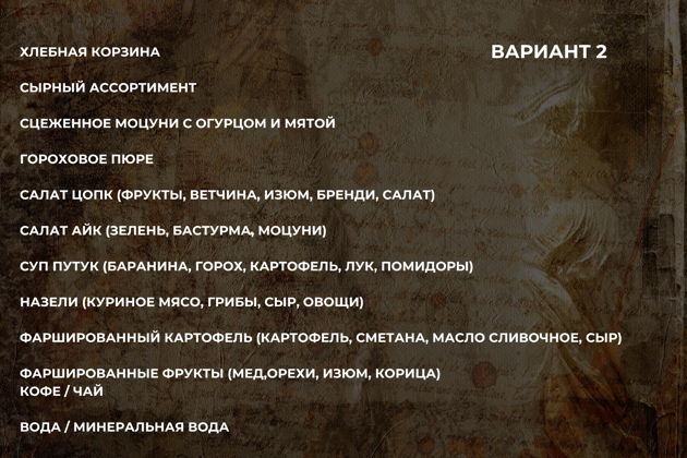 • Напишите нам после бронирования: мы отправим меню с сетами на выбор.