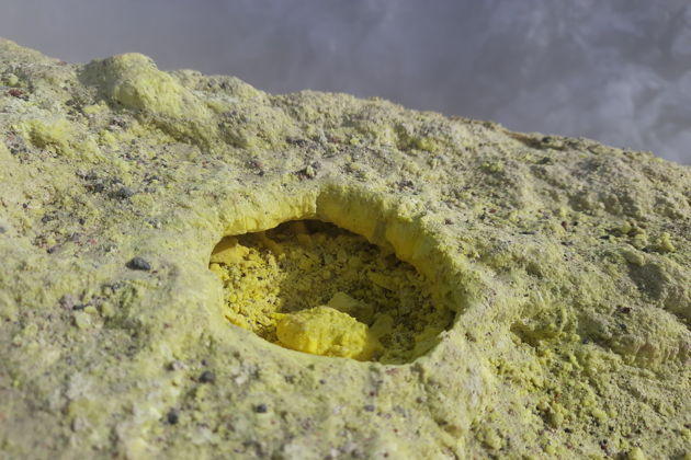 Вы увидите лавовую пробку с выходом раскаленных газов, фумарольное поле с сернистыми отложениями.