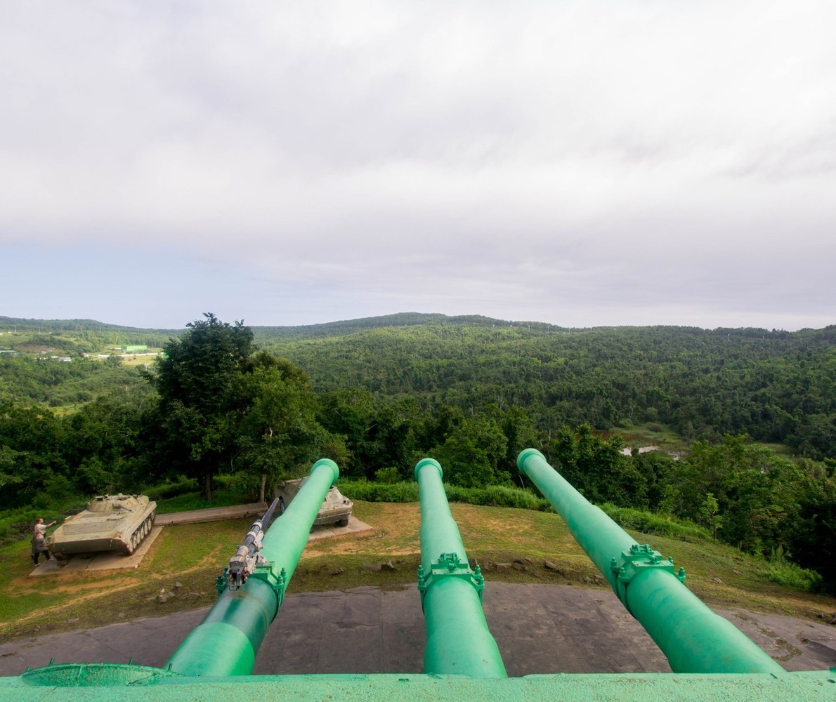 Ворошиловская батарея. Крупнейшая в России батарея является одним из уникальных артиллерийских сооружений в мире и занесена в Книгу рекордов Гиннесса. До неё будем двигаться вдоль кампуса ДВФУ, расположенного на 120 гектарах, а затем спустимся в оборудованное подземелье батареи. Под каждой из двух трёхствольных башен несколько этажей уходят на глубину 25 метров.