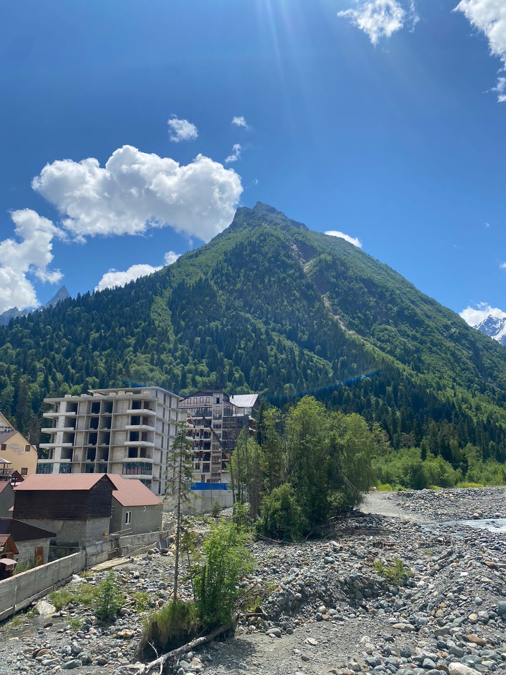 Домбай ♥️. У нас вышла очень размеренная экскурсия, виды на маршруте просто потрясающие, красивые ⛰️. Дорога асфальтированная, но это не точно.☺️ Все очень понравилось, с нами был гид Алим 🙏🏼. Большое спасибо! Мы выезжали Ессентуки-Кисловодск, заехали на кольцо гору, затем в сырные пещеры и дальше началась красивая дорога на Домбай. Останавливались у перевала, затем в Теберде у озера Кара Кёль. Погода была хорошая, немного был дождь, но быстро закончился. С подъемом на Домбай не очень повезло (берите шапки, перчатки, большие солнечные очки и дождевик по верх курток, если у вас промокаемая одежда), после первой высоты, появился ветер, на втором или третьем подъеме бил снег в лицо, начался град. Но все равно это стоит того, чтобы подняться на гору и почувствовать мощь и стихию. На спуске уже непогода по-тихоньку прекращалась, внизу шел дождь, но вскоре выглянуло солнце. Пошли пообедали, очень вкусно! За рекомендацию спасибо Алиму. Прогулялись по базарчику и поехали обратно. Заехали на мост, ведущий к озерам, пофотографировались, и в конце пути поднялись в Сентинский храм 10века, он не действующий, по сравнению с Шоанинским, но виды потрясающие и чувство умиротворения. Солнце светило вплоть до заката.