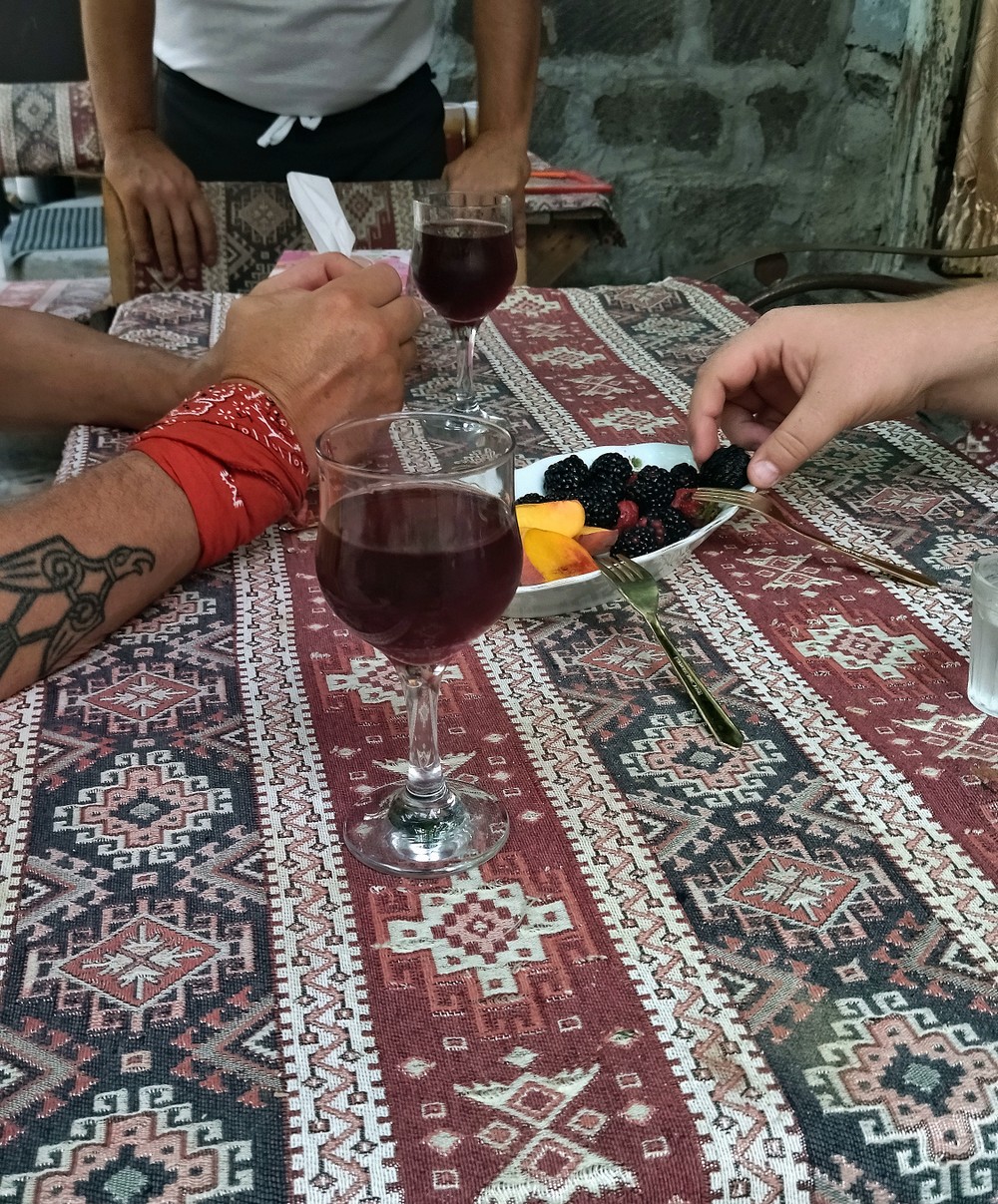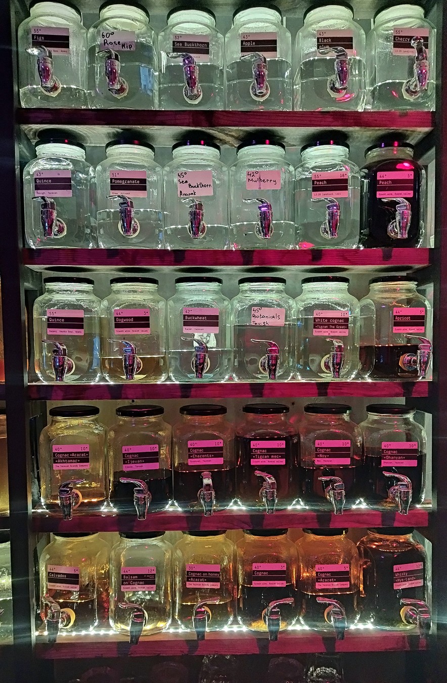 - Бар с крепким алкоголем, где будет приветственный шот. Здесь вы сможете попробовать крепкие дистилляты из фруктового сырья — винограда, абрикоса, тутовника, а также настойки на их основе