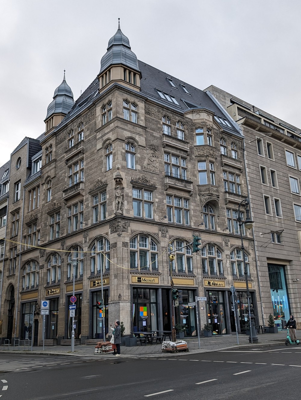 Бранденбургские ворота — Парижская площадь — отель «Адлон Кемпински» — музей Мадам Тюссо — Посольство РФ — Дворец кронпринцев — Дворец принцесс — Берлинская государственная опера — конная статуя Фридриха Великого — Старый дворец — Университет Гумбольдта — Цейхгауз — парк Люстгартен — Берлинский кафедральный собор — мост Фридрихсбрюке — Музейный остров — Дворцовый мост — Фридрихсвердерская кирха — Гумбольдт Форум — Берлинский дворец — Николаифиртель — церковь святого Николая — статуя святого Георгия на набережной реки Шпрее