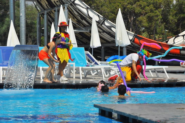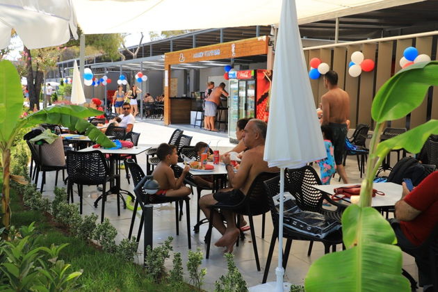 • В 12:30 обед в ресторанной зоне. На выбор: турецкая кухня (курица на гриле, рис, макароны, салаты, закуски) или детское меню (бургер с картофелем фри).