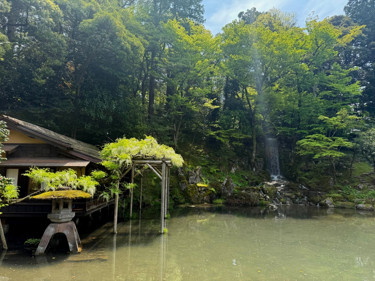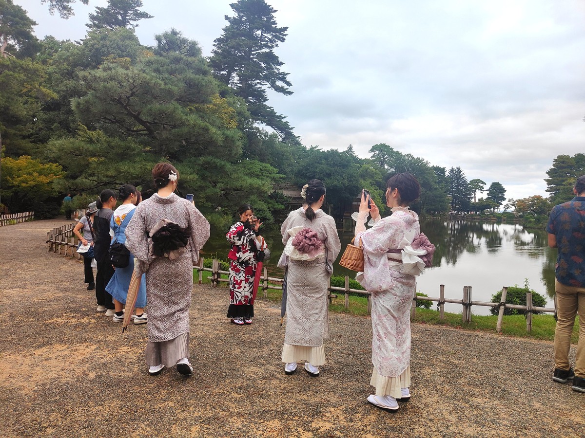 Один из трёх величайших ландшафтных садов Японии. Вы прогуляетесь по дорожкам среди клёнов, сосен и прудов с кристально чистой водой, увидите знаменитый фонтан — самый старый в Японии — и каменный фонарь Кото-дзи, ставший символом Канадзавы.