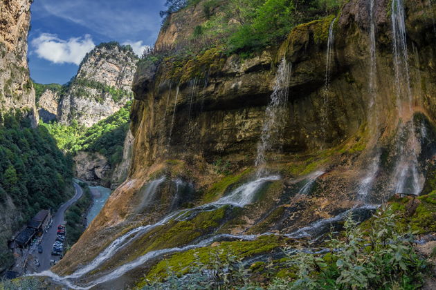 Чегемские водопады неофициально именуют Плачущими водопадами, всё потому, что каскады воды вырываются напрямую из скал, и создается ощущение, будто скалы плачут. Эта достопримечательность представляет собой группу водопадов, берущих свое начало в реках Адай-Су, Сакал-Туп и Каяарты, которые после ниспадают в реку Чегем. Адай-Су переводится как «Девичья коса», считается самым мощным, высота его достигает тридцати метров. Следующий по величине Сакал-Туп переводится с балкарского языка как «Вода из горла», представляет собой необычную фигуру в виде желоба с водой. Третий водопад состоит из нескольких небольших потоков воды, часть из которых спускается каскадами, а другая стекает со скал. На территории Чегемских водопадов сплетаются вода и камень и вместе создают феерические картины.