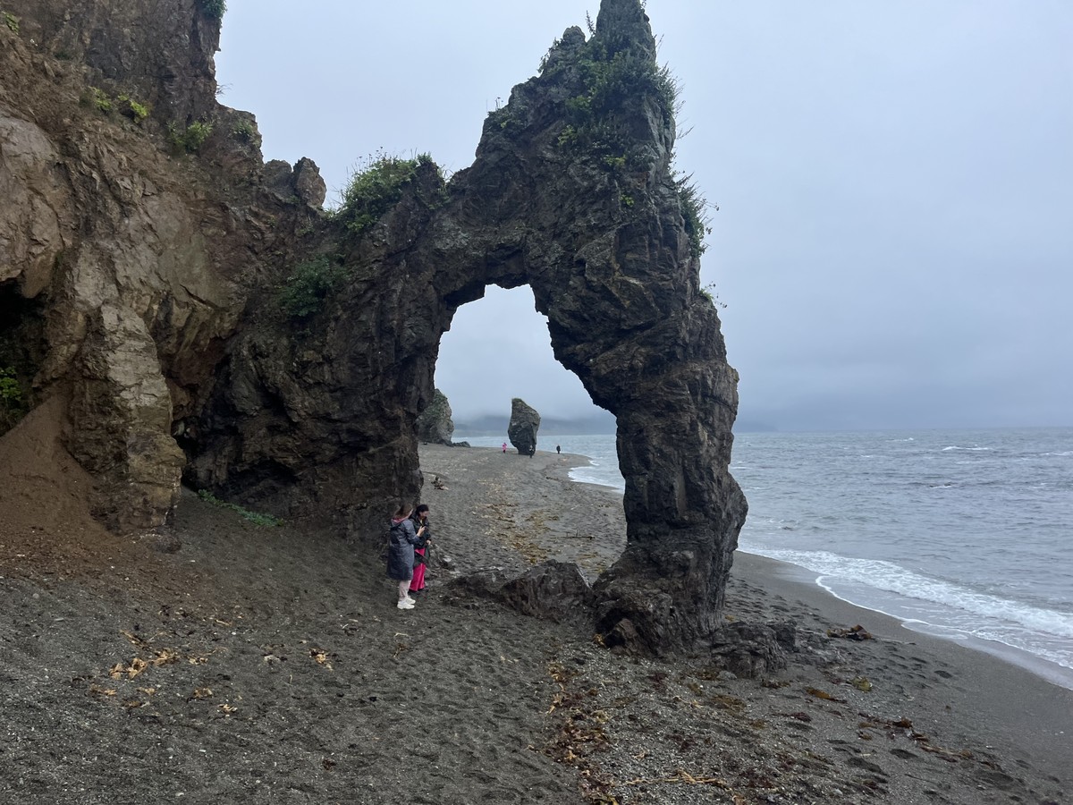 Район мыса Великан считается одним из самых красивых побережий на Сахалине. Все дело в рельефе этих мест: вдоль песчаного берега выросли каменные изваяния и арки причудливых форм. Давайте отправимся по местам, где сошлись скалы, тайга и суровое Охотское море. Будем любоваться каменными выступами и арками, наблюдать за птицами и фотографироваться.