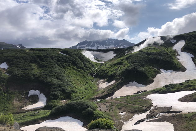 В 116 километрах от Петропавловка-Камчатского, на склоне вулкана Мутновский есть место под названием «Дачные источники». Местные жители называют его «Малой долиной гейзеров», так как повсюду бурлят выходы паро-газовой смеси и грязевых котлов, а фумарольные поля напоминают пейзажи знаменитой Долины гейзеров. В действительности здесь нет гейзеров, но есть невероятные и незабываемые панорамные виды. Туда то мы и отправимся!