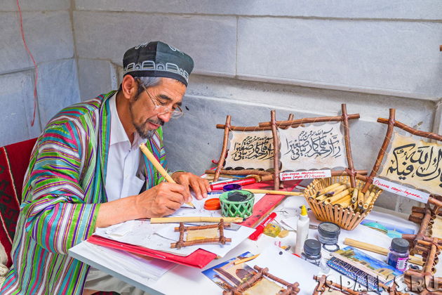 Прикоснуться к работам самаркандских мастеров и проникнуть в таинства создания эксклюзивных изделий. Декоративно-прикладное искусство Узбекистана — самобытное творчество народных мастеров, ремесленников, передающих своё умение из поколения в поколение. На экскурсии вы познакомитесь с легендарной шёлковой бумагой, шедеврами ковроткачества, шелками и изысканной керамикой. Сможете своими руками создать уникальное изделие и забрать его домой — на память.
