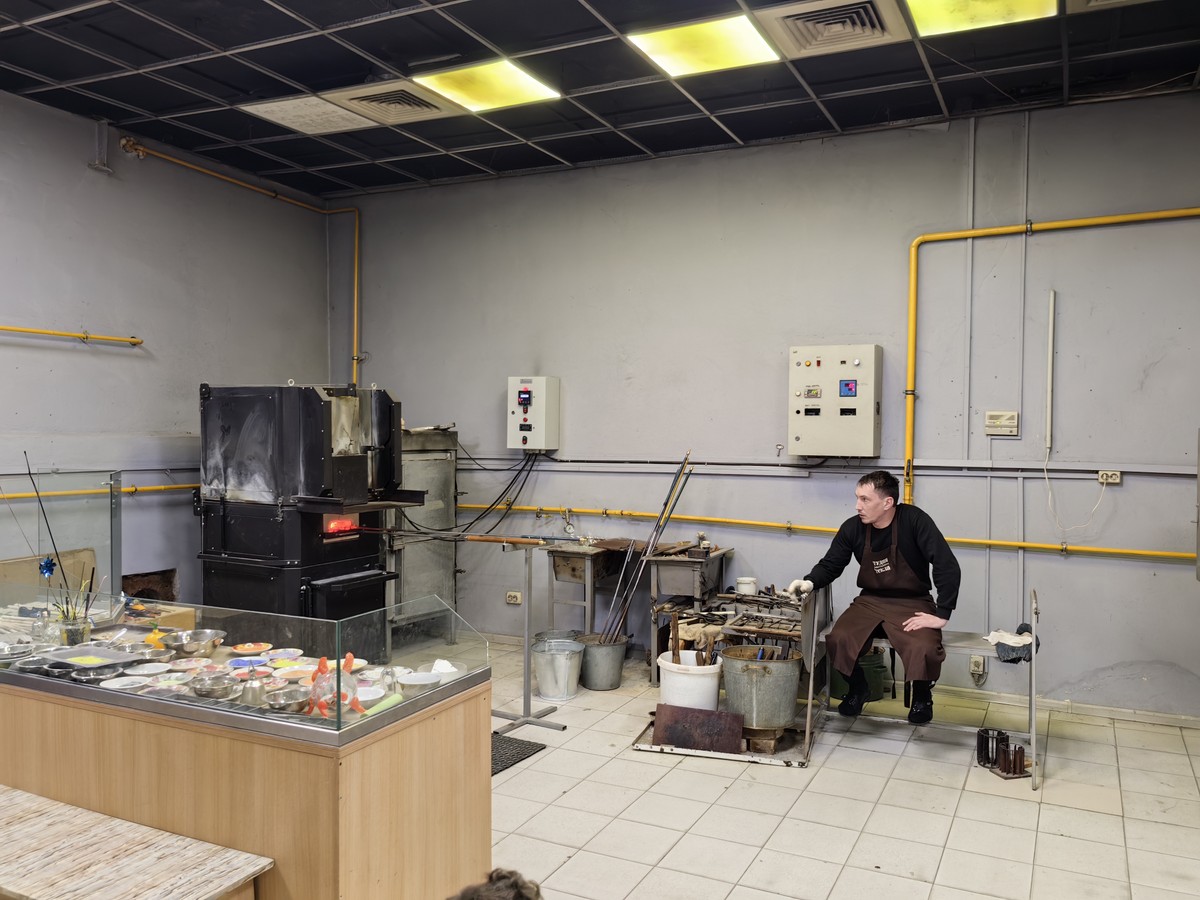 Следующая часть программы — наблюдение за процессом рождения стеклянных фигур из обычного куска расплавленного стекла. Опытный стеклодув покажет, как рождаются настоящие шедевры, вы узнаете о тонкостях этой профессии, а также в стекольной мастерской сможете приобрести оригинальные изделия.