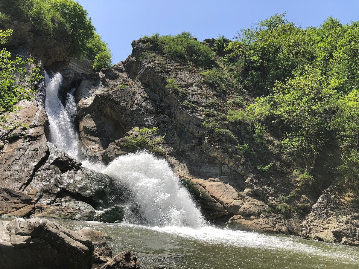 Хучнинский водопад. Теперь наш путь лежит к одной из самых впечатляющих локаций Дагестана. Вы полюбуетесь двумя каскадами, которые сначала встречаются с каменным плато, а затем, набирая мощь, срываются в озеро у подножья горы. В теплое время года вы сможете здесь искупаться.