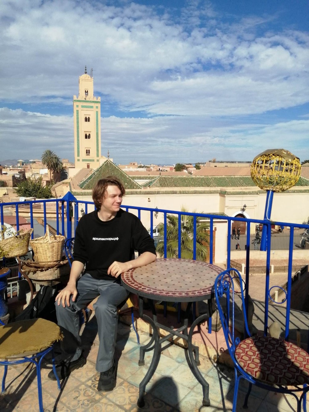 Вчера, были на экскурсии в Марракеше с Бадером. Было классно несмотря на +42 в тени. Бадер провел нас по закоулкам медины. Рассказал об обычаях марроканцев, угостил лепешками, показал много нового и рассказал много интересного о повседневной жизни жителей медины. Спасибо громадное