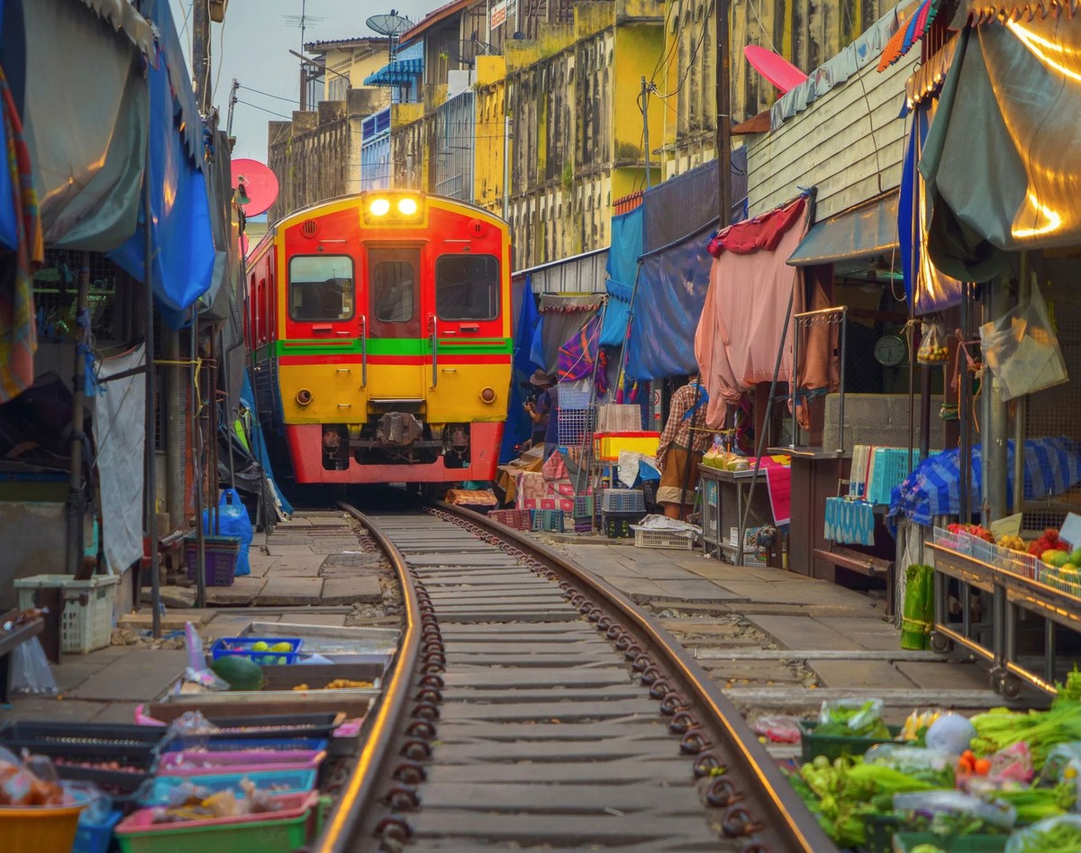 - Наше путешествие начнётся с посещения рынка «раскрывающихся зонтов» Мэклонг. Вы станете свидетелями удивительного зрелища: когда подъезжает поезд, сотни зонтиков складываются, а прилавки с ж/д путей моментально сдвигаются, чтобы после проезда состава снова вернуться на свои места.