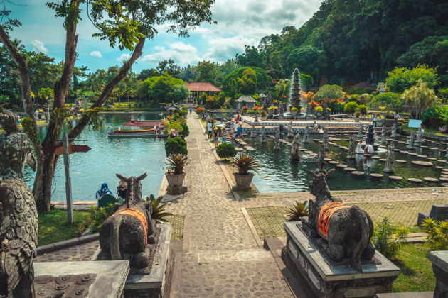 Далее маршрут продолжится к востоку острова, где находится великолепный дворец Тирта Гангга. Этот водный дворец, построенный в традиционном балийском стиле, поражает своими изящными фонтанами, прудами с карпами и ухоженными садами. Здесь можно насладиться красотой архитектуры и покормить карпов.