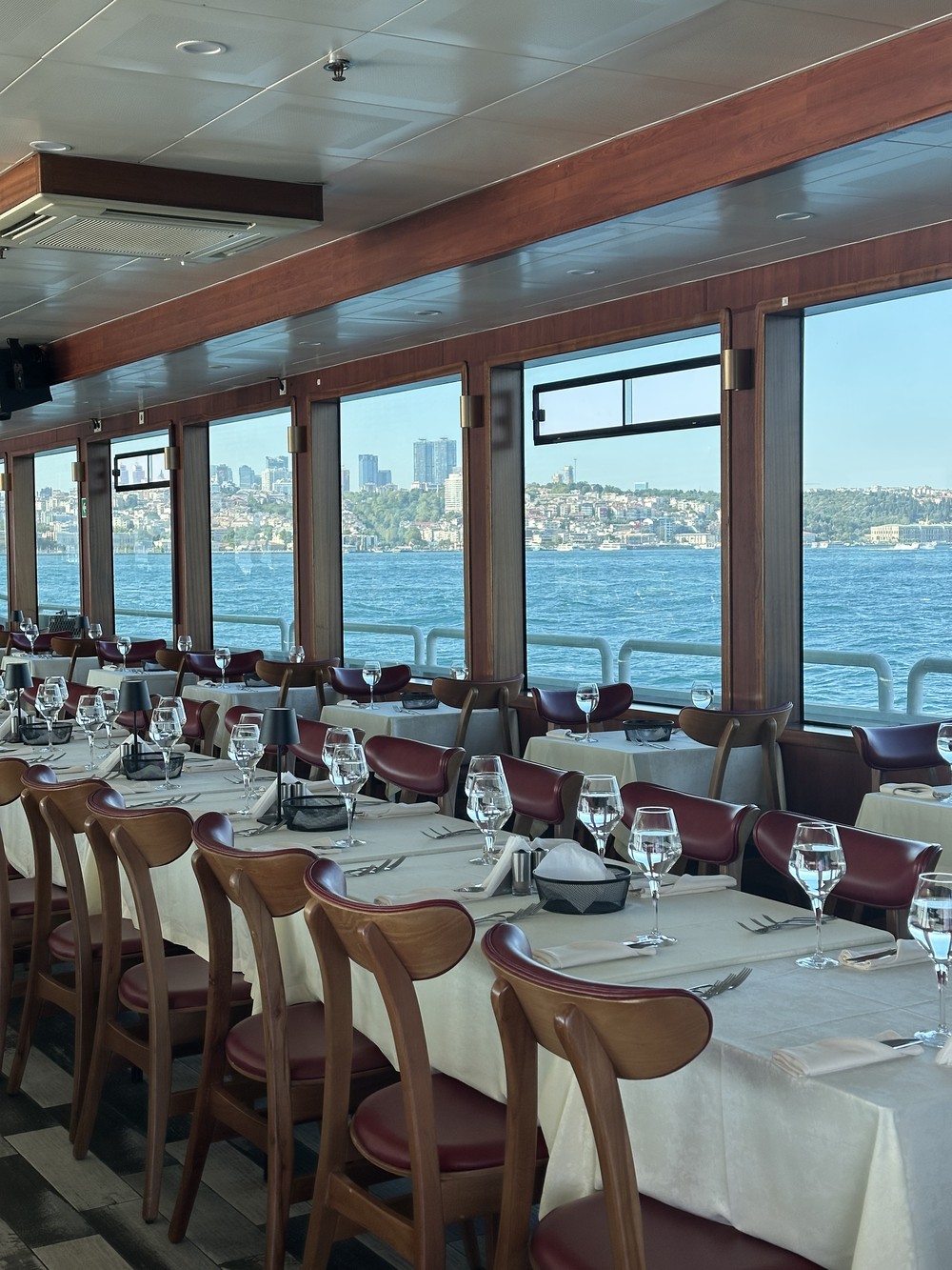 Подышите морским воздухом на открытой палубе, а на закрытой сможете послушать рассказ гида о достопримечательностях за бортом и пообедать традиционными блюдами турецкой кухни.