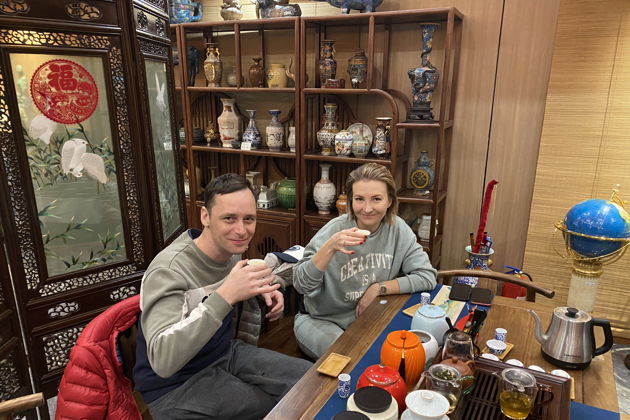 Затем вы посетите традиционный чайный дом. Мастер познакомит вас с богатой историей китайского чая, расскажет о его особенностях, продемонстрирует традиционные способы приготовления, объясняя каждый шаг и его значение. Вы узнаете, какая должна быть температура воды, сколько надо заваривать чай, как правильно его наливать и какое угощение подходит к определённому виду. Вы попробуете несколько сортов напитка — зелёный, чёрный, белый, жёлтый, улун.