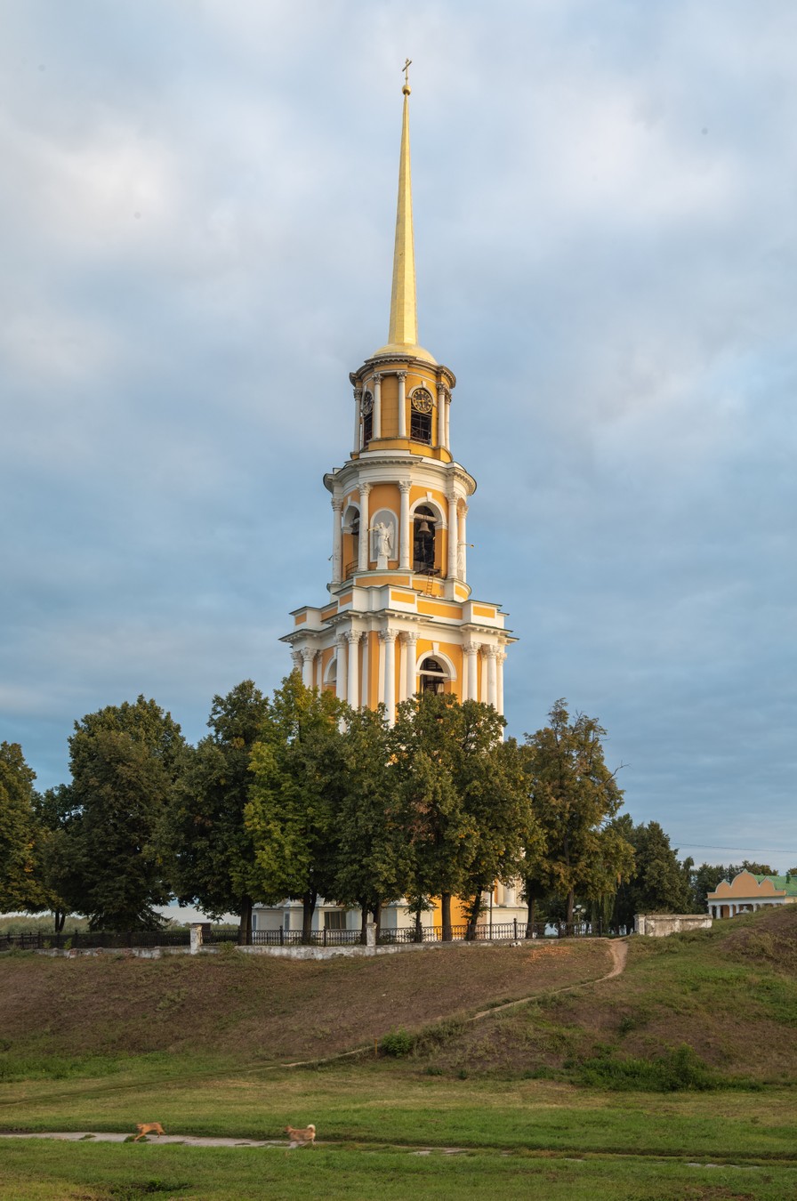 - Соборная колокольня (с подъёмом). Внутри вы увидите экспозицию, посвящённую полувековому строительству колокольни. А затем полюбуетесь видами Рязани с высоты звонницы под рассказ о прошлом улиц, площадей, зданий и храмов.