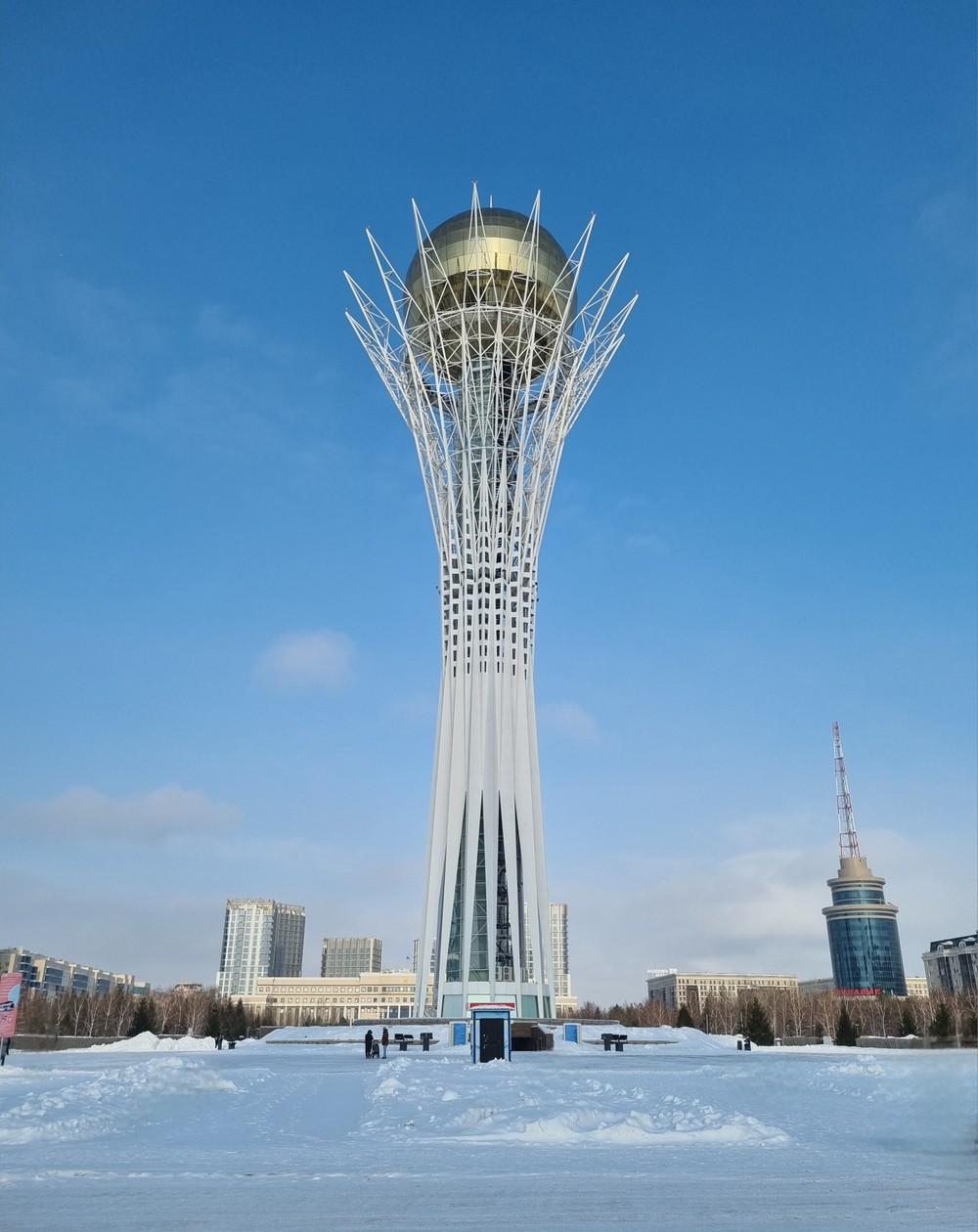 - Байтерек — 100-метровый монумент, увенчанный шаром