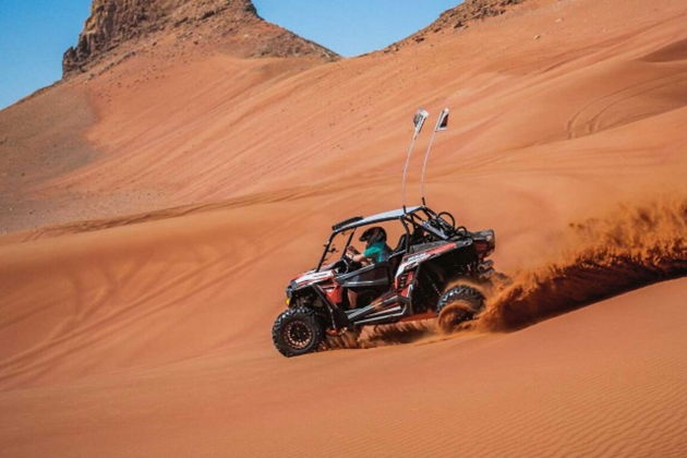 Пустынное сафари на багги по дюнам ДубаяКороткий насыщенный тур на багги по песчаным дюнам Дубая. Прокатитесь по волнистым песчаным ландшафтам на мощном багги, который обеспечивает хорошую проходимость и контроль на сложном рельефе.