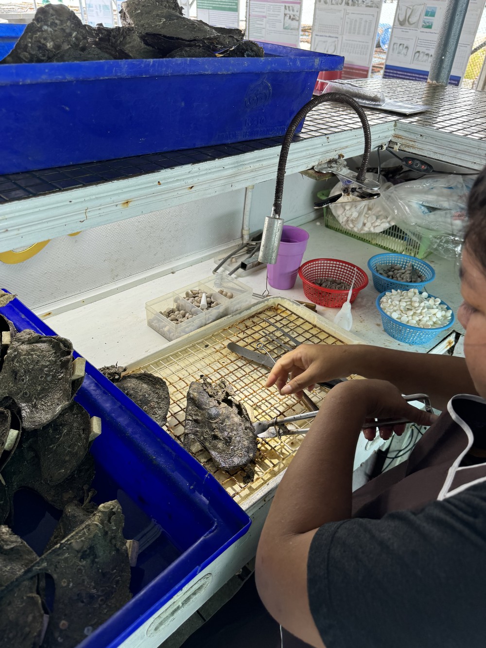 На автобусе поедем на ближайший пирс и оттуда на лодке поплывём на жемчужную ферму. Здесь детально расскажем о производстве жемчуга и познакомим вас с разными аквакультурами. Вы попробуете зелёную икру (определённый вид водорослей) и покормите больших рыб прямо с руки.