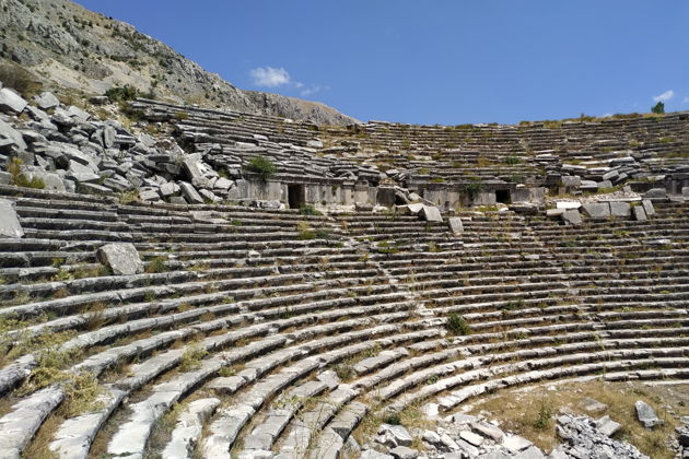 Кроме фонтанов, там красивая библиотека с мозаичным полом, театр, центральная площадь — агора, а также скальные захоронения. Место не слишком оживленное, поэтому внимательному осмотру достопримечательностей ничто не помешает.
