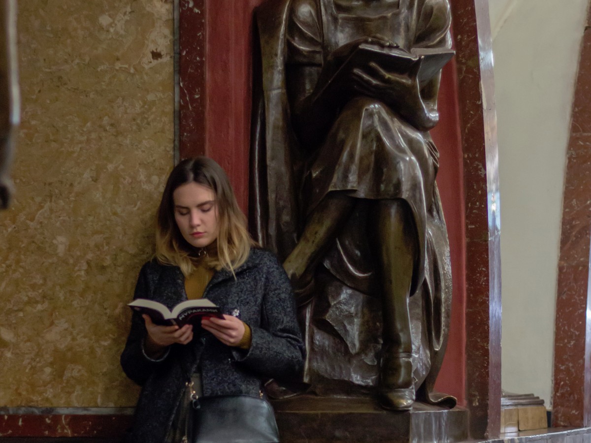 Площадь Революции — более темная и фактурная станция, где мы сделаем тематические снимки рядом с бронзовыми фигурами скульптура Матвея Манизера. Пожалуй, в Московском метрополитене нет другой станции, с которой было бы связано столько легенд и поверий: интересующимся я о них обязательно расскажу.