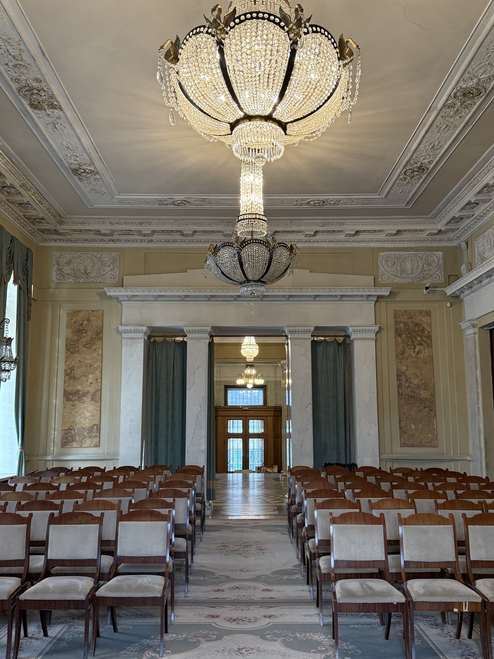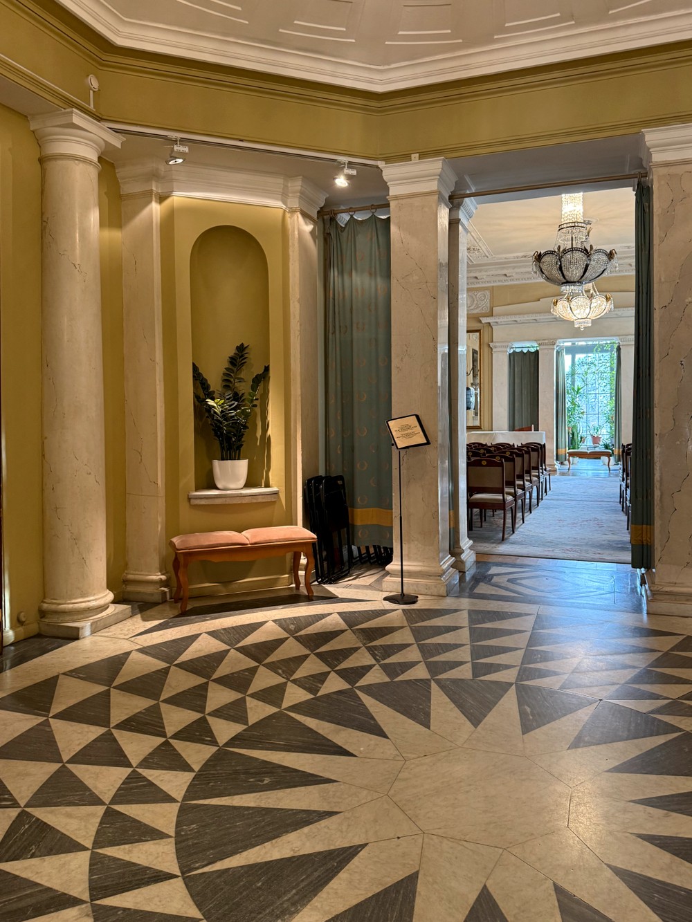 - Рассмотрим великолепную мраморную лестницу и дубовую гостиную