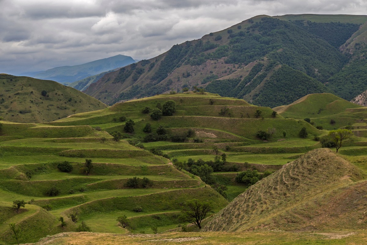 Одна из топовых локаций на маршруте — ландшафты близ аула Чох, творение природы и человека. Любуясь этими пейзажами, вы поймёте, что значит сельскохозяйственный труд в горной местности.