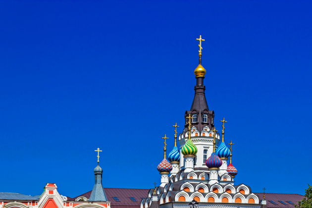 • Насладимся видами Княже-Владимирского собора. Современная постройка стилизована под раннемосковское зодчество, хотя и не повторяет в точности утраченный храм.