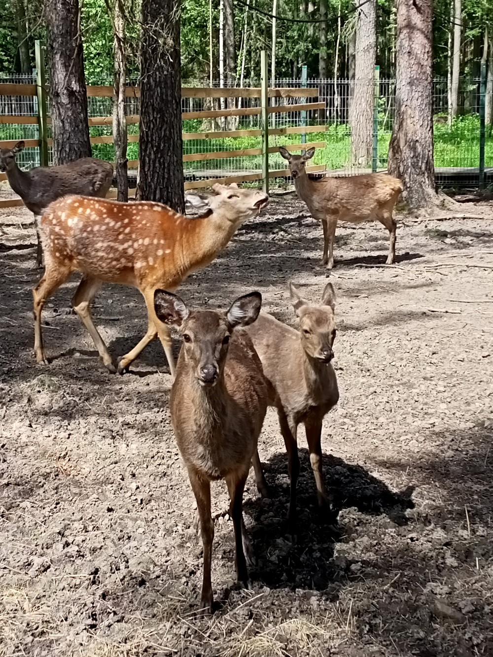 На «Поляне двенадцати месяцев» кипит жизнь. Вы увидите, как по неведомым дорожкам важно прогуливаются пятнистые олени, рядом резвятся ушастые кролики, а белочки щёлкают орешки.