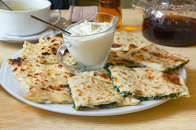 Нагуляв аппетит, вы отправитесь на обед в кафе, где для вас приготовят национальный суп Дюшпере с миниатюрными пельмешками, Долму из виноградных листьев с гатыгом, табасаранское чуду с мясом и картошкой, нарежут овощи и угостят соками и вкусным чаем с «пях-пяхом».