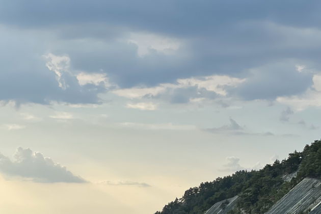 Остановка Белые скалы. Шикарные как снег уходящие вдаль обрывистые белые как снег скалы. В хорошую погоду также можно рассмотреть Новороссийск, Мысхако и гору Колдун.