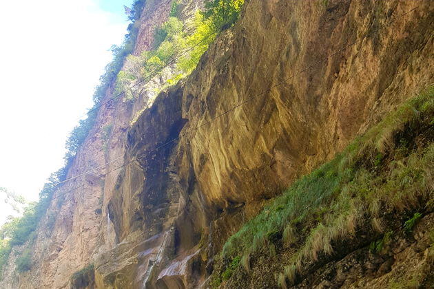 Кардагаванская теснина — очень глубокая и узкая расщелина в скале, внизу которой беснуется река Фиагдон. Красиво и страшно одновременно — дух захватывает! Глубина каньона более 60 метров, а ширина 2-3 метра.