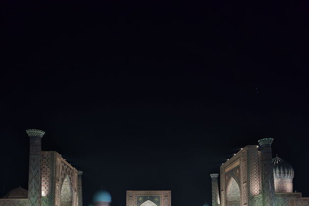• Площадь Регистан — сердце Самарканда. На ней расположены три величественных медресе, великолепный архитектурный комплекс, ставший памятником восточного зодчества.
