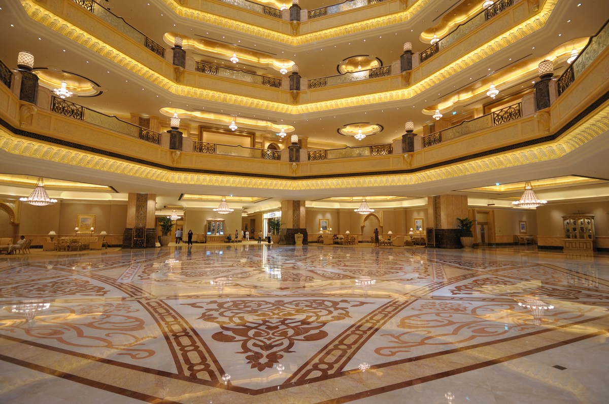 Emirates Palace. Вы познакомитесь с традиционной арабской архитектурой дворца-отеля и оцените впечатляющие интерьеры холла. Увидите банкомат, где можно купить золотые слитки. И сможете выпить кофе с золотом.