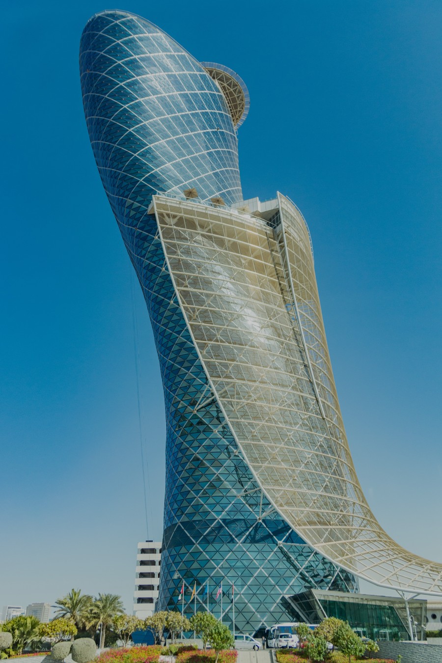 Capital Gate (падающая башня). Подъедем к небоскрёбу, который вошёл в Книгу рекордов Гиннесса как здание с самым большим наклоном в мире — он составляет 18 градусов.