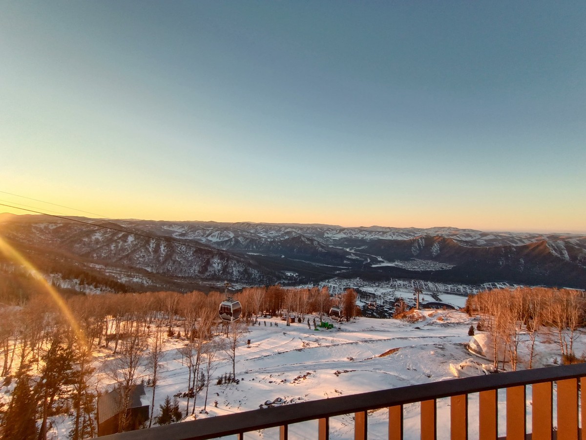 - Всесезонный курорт «Манжерок». Здесь расположен самый большой в России пятизвёздочный отель. При желании зайдём в него и оценим масштаб. Также вы сможете подняться на вершину горы Синюха на скоростной канатной дороге. Оттуда открывается панорама всех горных хребтов вокруг